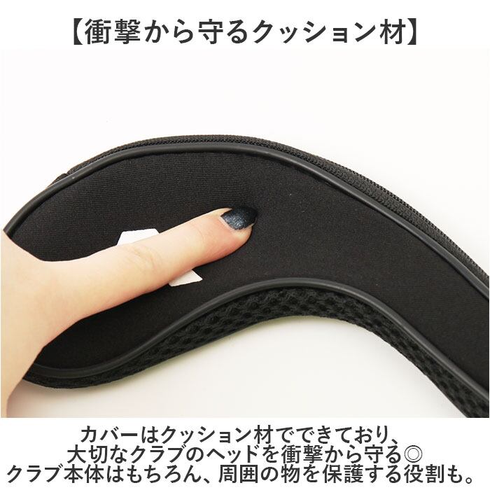 ・カバーはクッション材でできており、大切なクラブのヘッドを衝撃から守る◎クラブ本体はもちろん、周囲の物を保護する役割も。