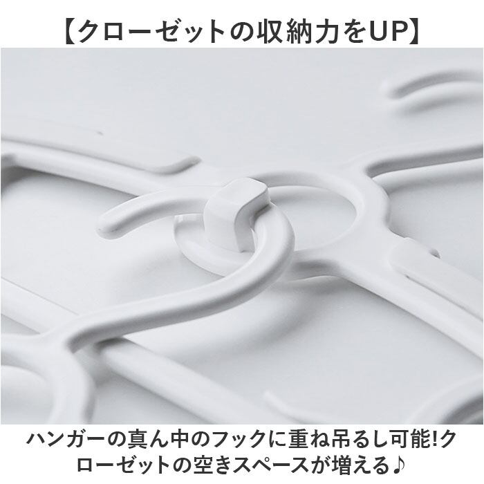 ・ハンガーの真ん中のフックに重ね吊るし可能!クローゼットの空きスペースが増える♪
