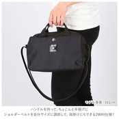 ・ハンドルを腕に掛けて、ちょこんと手提げに。ショルダーベルトを自分サイズに調節して、肩掛けにもできる2WAY仕様!