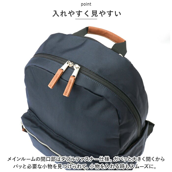 ・メインルームの開口部はダブルファスナー仕様。ガバッと大きく開くからパッと必要な小物を見つけられて、小物を入れる時もスムーズに。