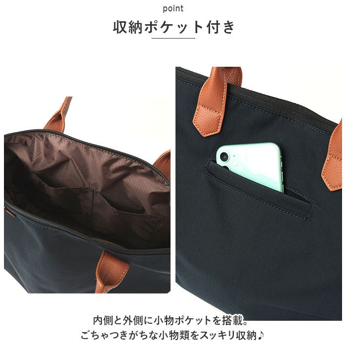 ・内側と外側に小物ポケットを搭載。ごちゃつきがちな小物類をスッキリ収納♪