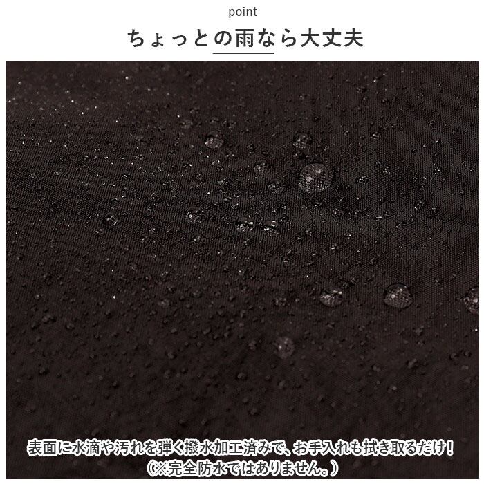 ・表面に水滴や汚れを弾く撥水加工済みで、お手入れも拭き取るだけ!(※完全防水ではありません。)