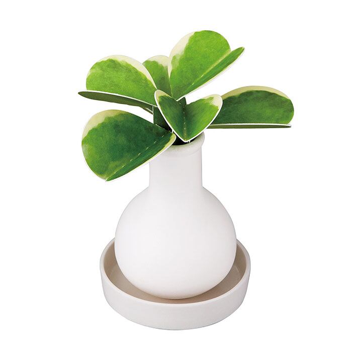・ポットに水道水を100ml注ぎ、観葉植物に模したペーパーリーフをセット。