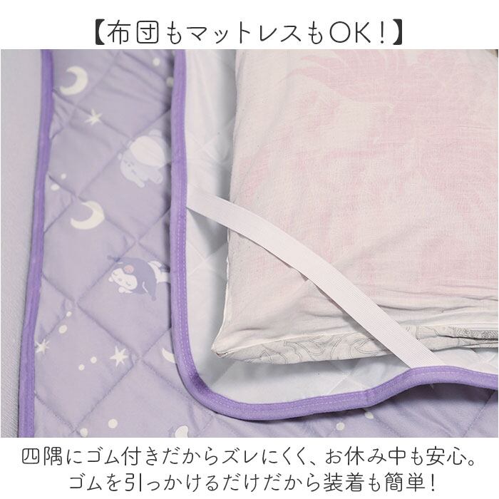・四隅にゴム付きだからズレにくく、お休み中も安心。ゴムを引っかけるだけだから装着も簡単!