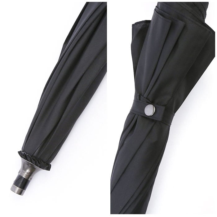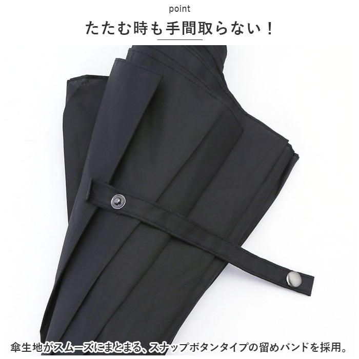 ・傘生地がスムーズにまとまる、スナップボタンタイプの留めバンドを採用。