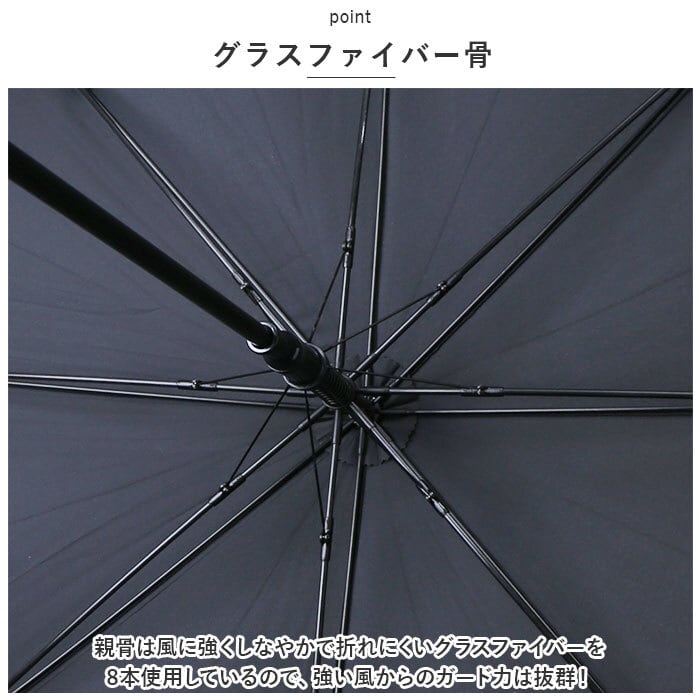 ・親骨は風に強くしなやかで折れにくいグラスファイバーを8本使用しているので、強い風からのガード力は抜群!