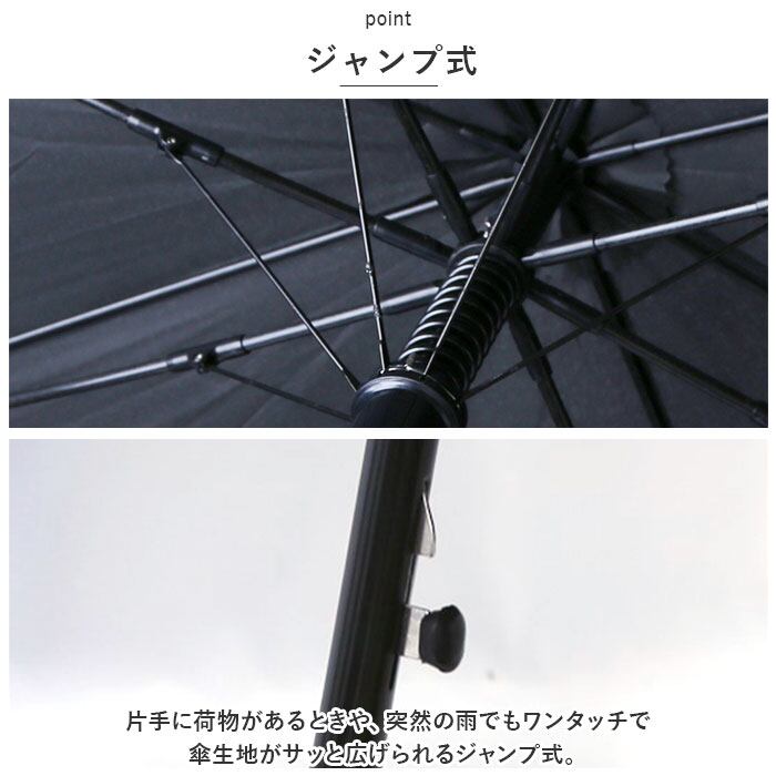 ・片手に荷物があるときや、突然の雨でもワンタッチで傘生地がサッと広げられるジャンプ式。