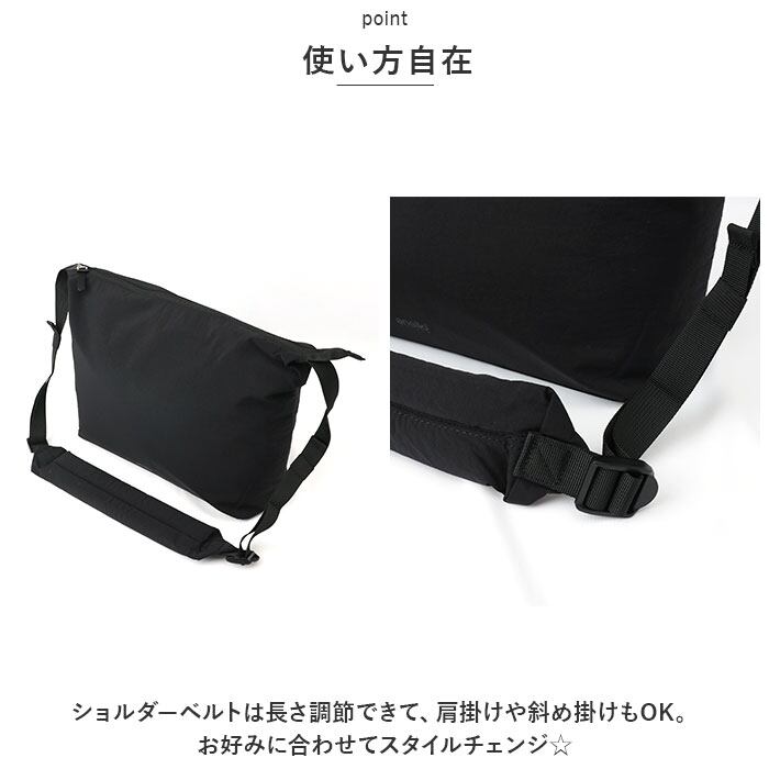 ・ショルダーベルトは長さ調節できて、肩掛けや斜め掛けもOK。お好みに合わせてスタイルチェンジ☆
