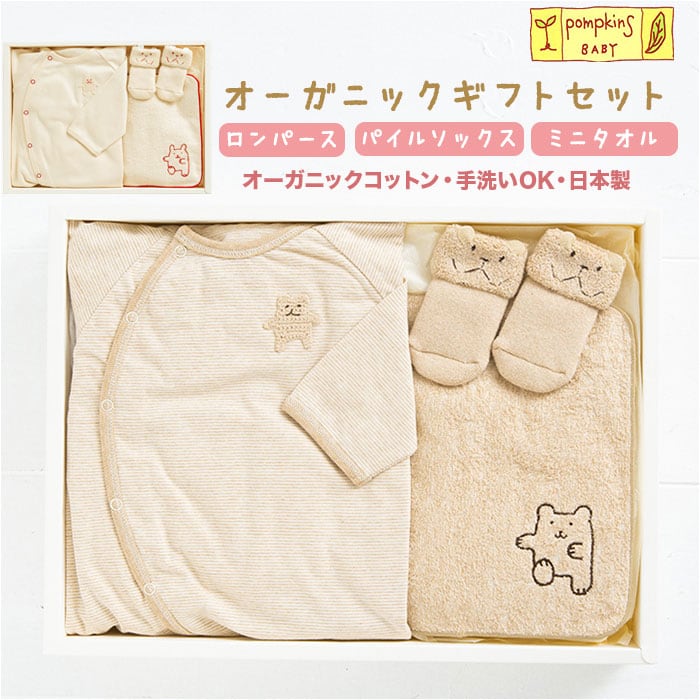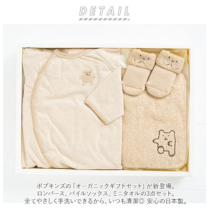 出産祝い ギフトセット 3点セット 通販 ブランド ポプキンズ ベビー ギフト オーガニックコットン 赤ちゃん ベビー用品 男の子 女の子 日本製 出産お祝い おしゃれ かわいい ギフト ロンパース ミニタオル ソックス 靴下