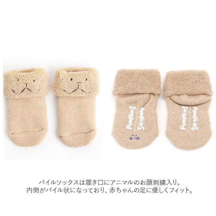 ・パイルソックスは履き口にアニマルのお顔刺繍入り。
