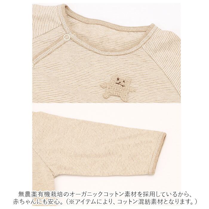 ・無農薬有機栽培のオーガニックコットン素材を採用しているから、赤ちゃんにも安心。(※アイテムにより、コットン混紡素材となります。)