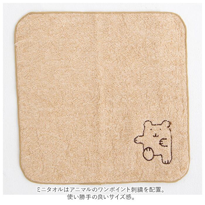・ミニタオルはアニマルのワンポイント刺繍を配置。