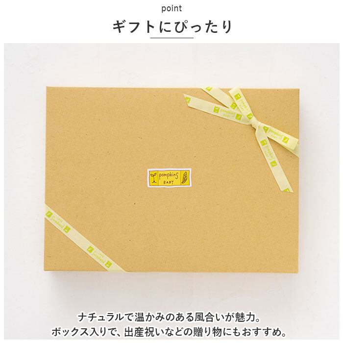・ナチュラルで温かみのある風合いが魅力。ボックス入りで、出産祝いなどの贈り物にもおすすめ。