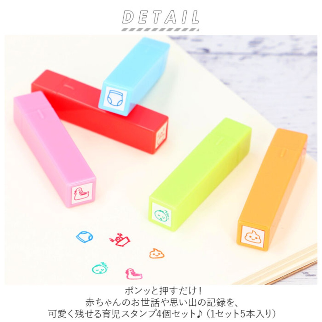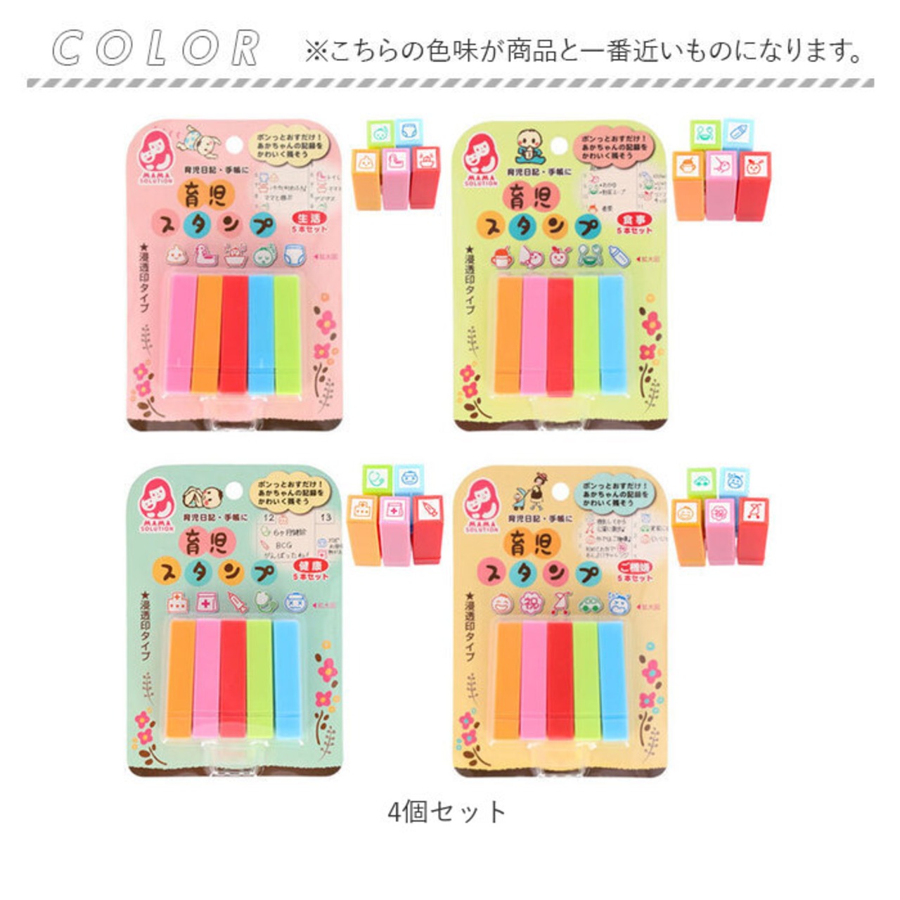 ・ポンッと押すだけ!赤ちゃんのお世話や思い出の記録を、可愛く残せる育児スタンプ4個セット♪(1セット5本入り)