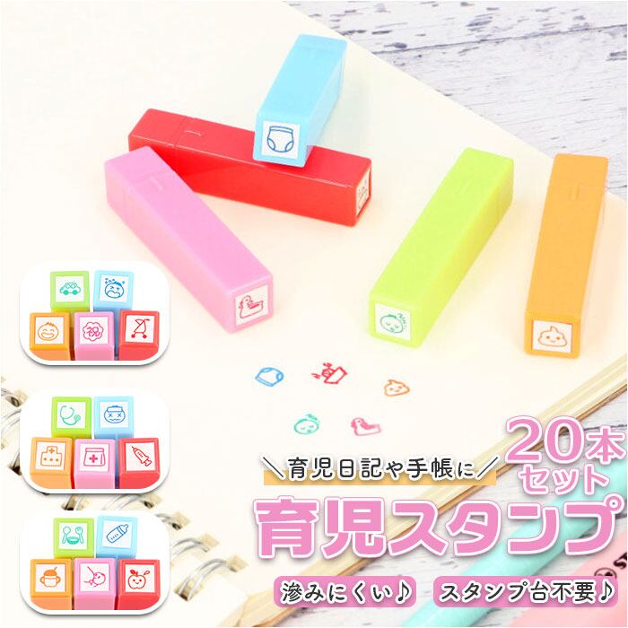 育児スタンプ 通販 4種類 20本 セット スタンプ はんこ ダイアリー 母子手帳 育児 浸透印 日記 手帳 ベビー 生活 食事 健康 日本製 出産祝い 育児グッズ