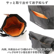 ・内側、外側合わせて6個のポケットを配置しており、バッグの中で小物を探す手間を軽減。