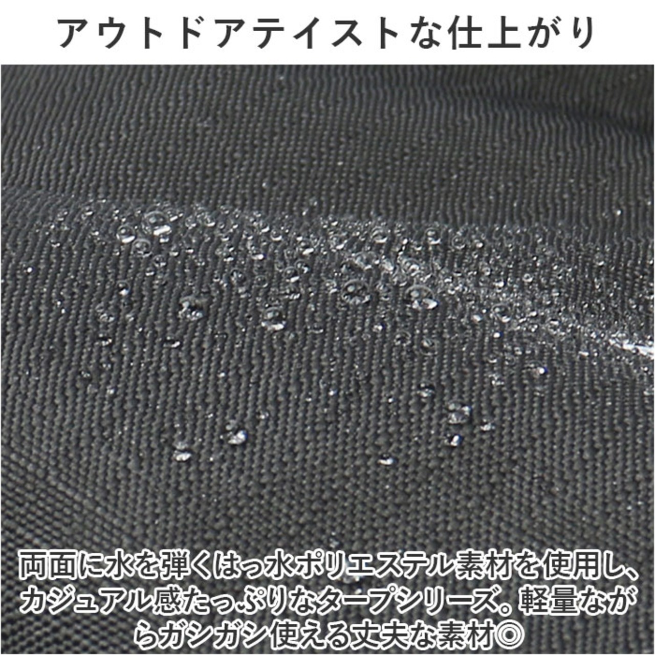 ・両面に水を弾くはっ水ポリエステル素材を使用し、カジュアル感たっぷりなタープシリーズ。軽量ながらガシガシ使える丈夫な素材◎