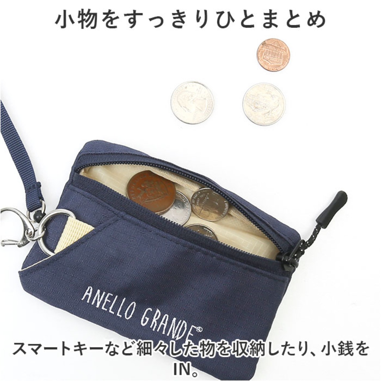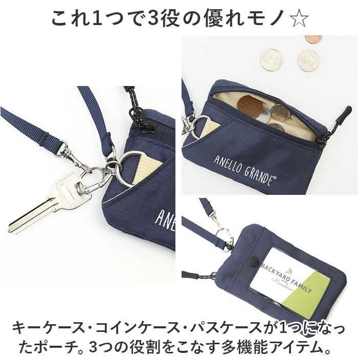 ・キーケース・コインケース・パスケースが1つになったポーチ。3つの役割をこなす多機能アイテム。