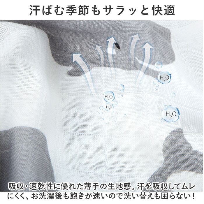 ・柔らかなコットンの2重ガーゼを使用。ふんわり柔らかく、デリケートな肌に触れてもノンストレス。