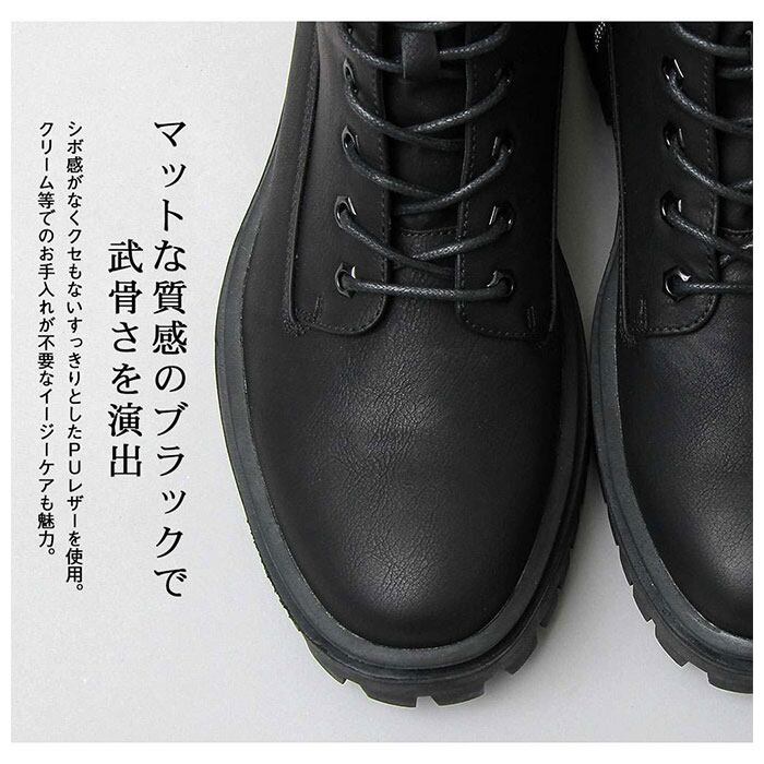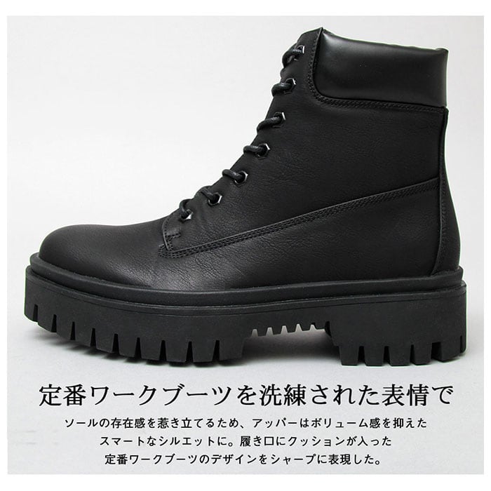・適度なシボ感&マットな質感のPUレザー素材を使用し、ワークブーツらしい武骨な表情を演出。