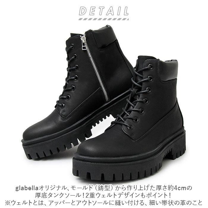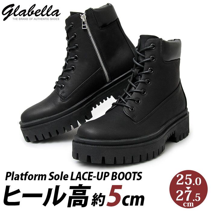 グラベラ ブーツ メンズ glabella GLBB-210 通販 ブランド ワークブーツ 厚底 ショートブーツ サイドジップ メンズブーツ おしゃれ きれいめ カジュアルシューズ レースアップブーツ 5センチ ヒールブーツ 冬 フェイク レザー 紳士靴 紐靴 メンズシューズ くつ シューズ