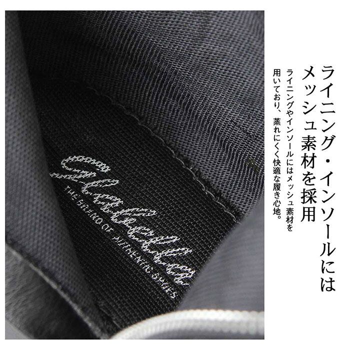 ・ライニングやインソールはメッシュ素材で、ムレにくく快適な履き心地!サラッとした生地感で足入れもスムーズ。