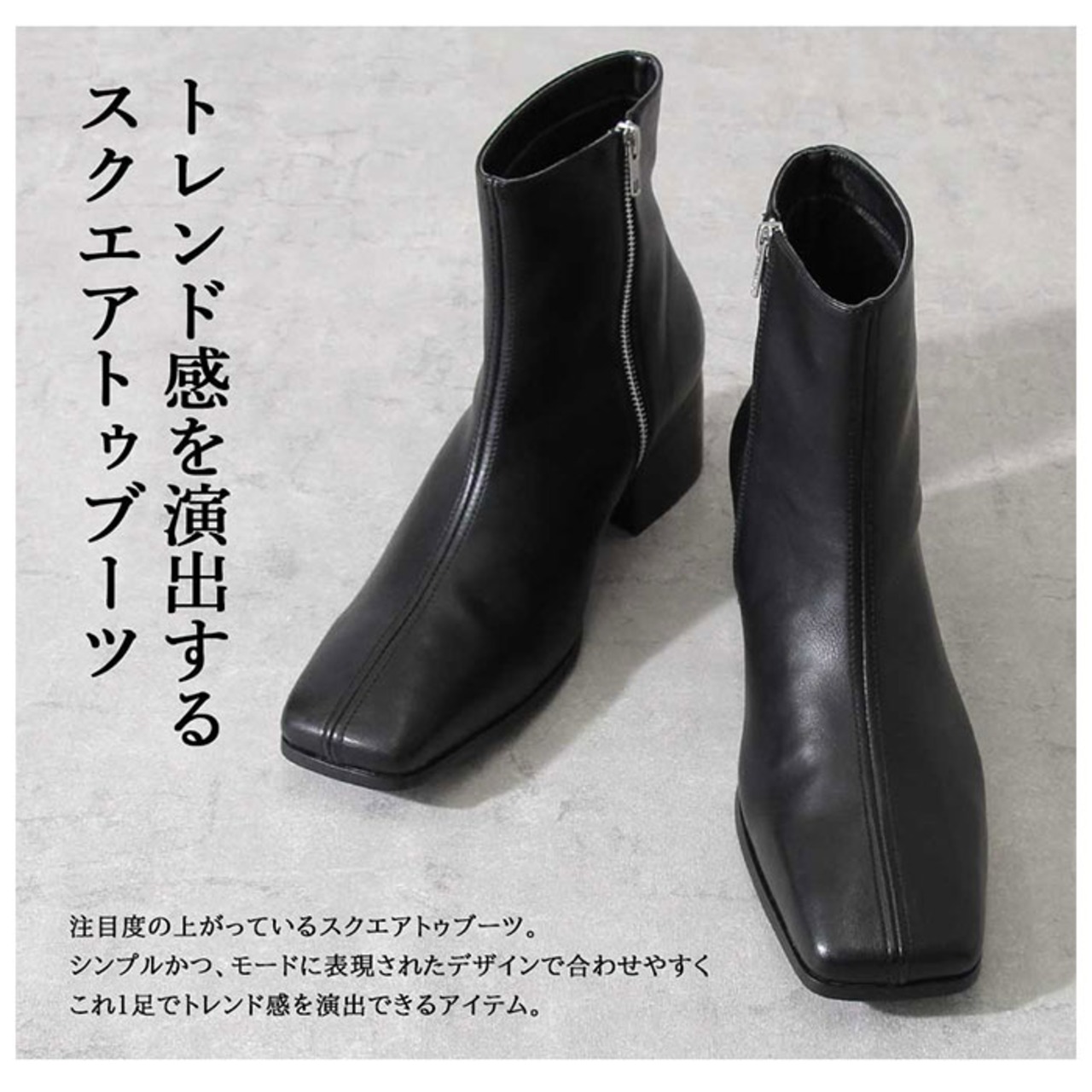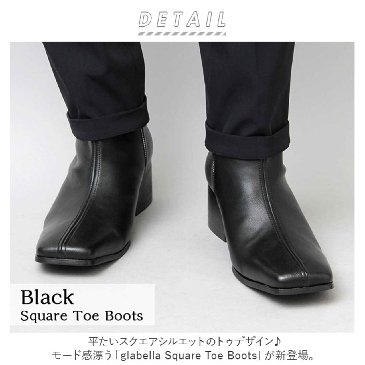 ・平たいスクエアシルエットのトゥデザイン♪モード感漂う「glabella Square Toe Boots」が新登場。