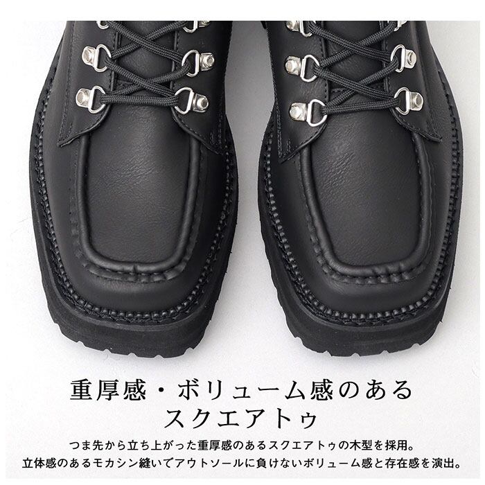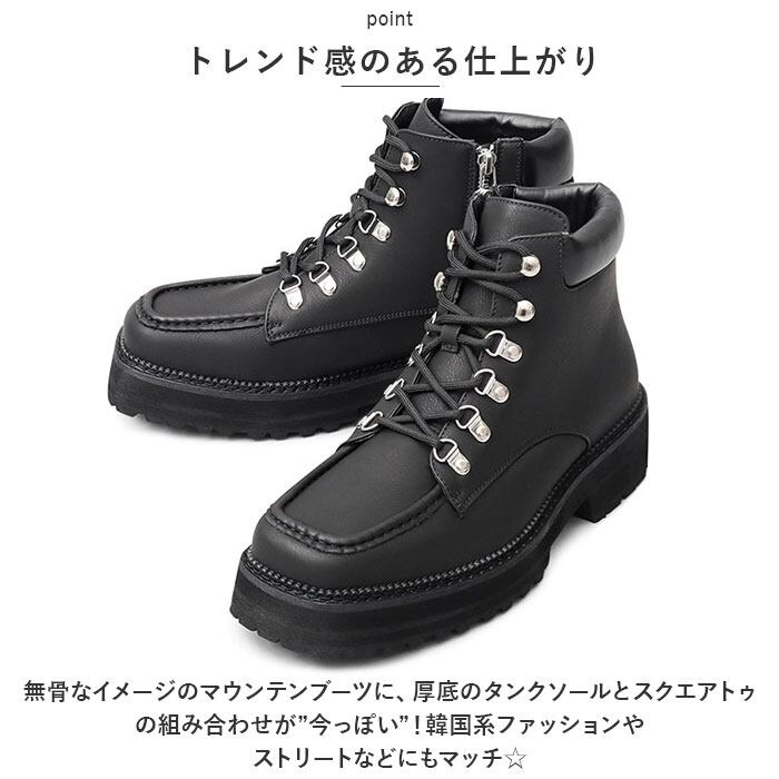 ・無骨なイメージのマウンテンブーツに、厚底のタンクソールとスクエアトゥの組み合わせが”今っぽい”!韓国系ファッションやストリートなどにもマッチ☆