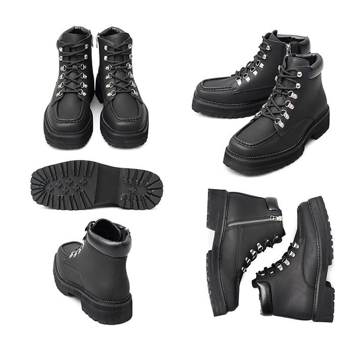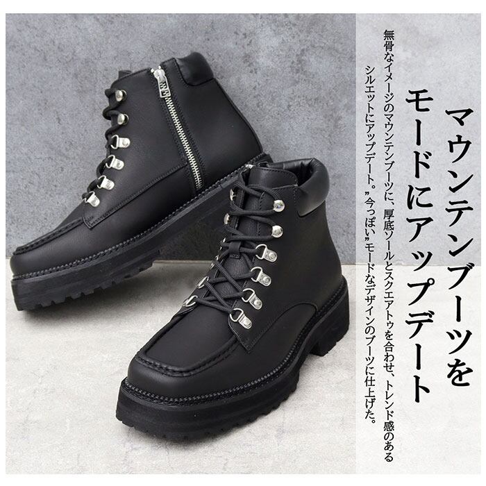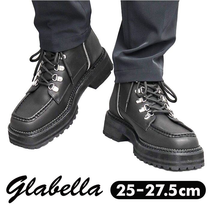 glabella グラベラ ブーツ 通販 GLBB-278 マウンテンブーツ ショートブーツ メンズ メンズブーツ ワークブーツ レースアップ 紐靴 サイドジップ スクエアトゥ 厚底ソール モードカジュアル ファスナー フェイクレザー メンズシューズ 靴 合皮