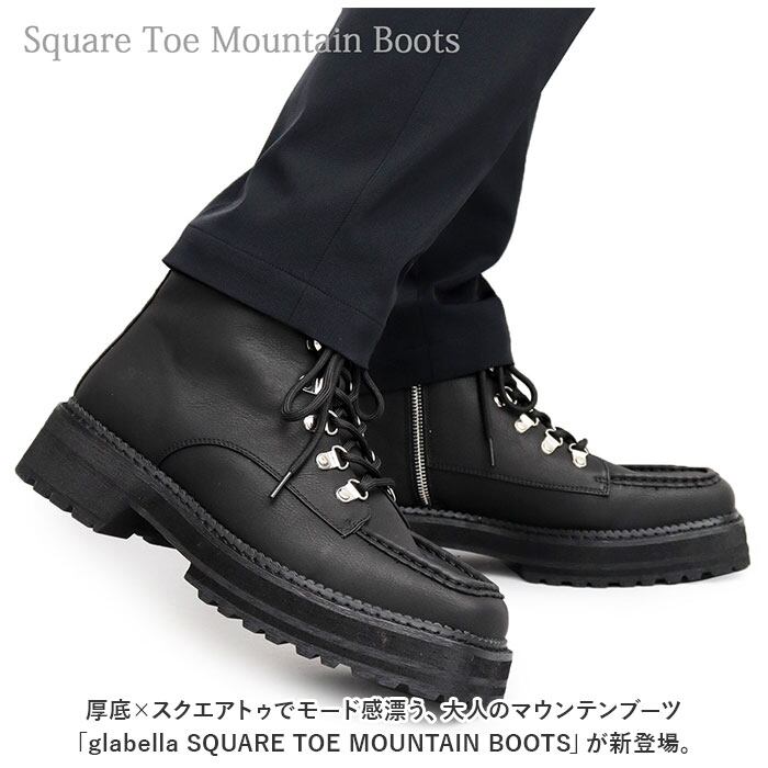 ・厚底×スクエアトゥでモード感漂う、大人のマウンテンブーツ「glabella SQUARE TOE MOUNTAIN BOOTS」が新登場。