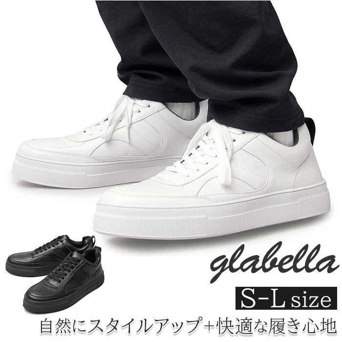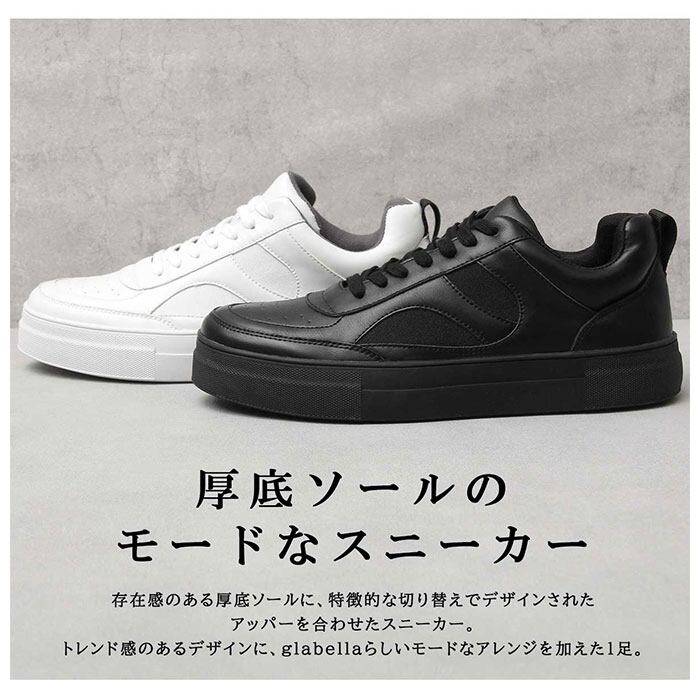 グラベラ スニーカー glabella GLBT-221 通販 ブランド メンズ 厚底 厚底靴 厚底スニーカー フェイクレザー おしゃれ きれいめ カジュアルシューズ シンプル 白 黒 ブラック ホワイト レザースニーカー 紳士靴 メンズシューズ 靴 くつ シューズ