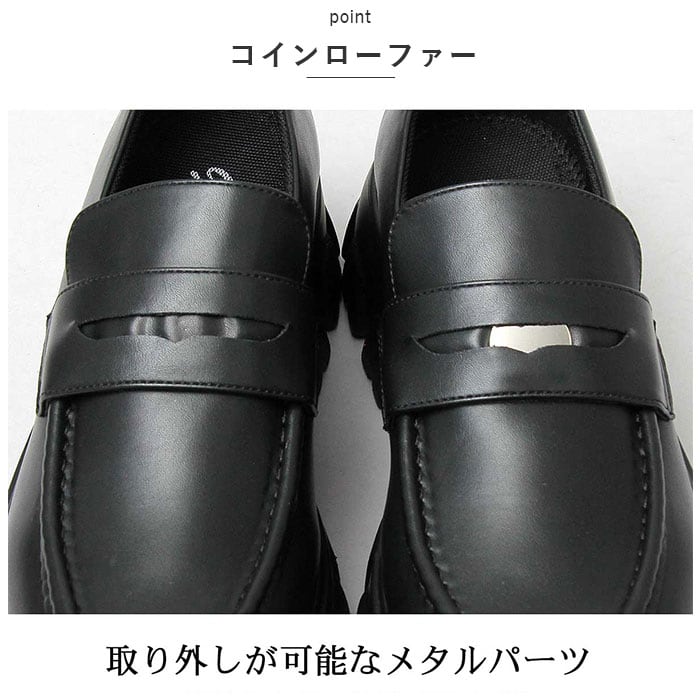 ・メタルコインをINした、さりげないアクセントがおしゃれ。コインは取り外し可能で、プレーンなローファーとして使用することもできる。