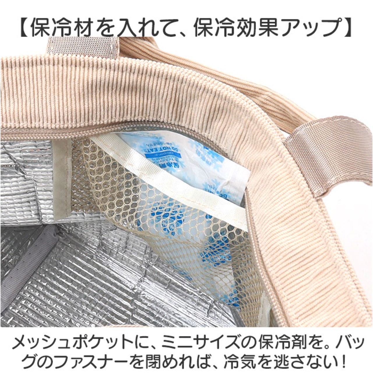 ・メッシュポケットに、ミニサイズの保冷剤を。バッグのファスナーを閉めれば、冷気を逃さない!