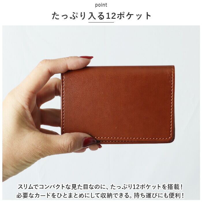 ・スリムでコンパクトな見た目なのに、たっぷり12ポケットを搭載!必要なカードをひとまとめにして収納できる。持ち運びにも便利!