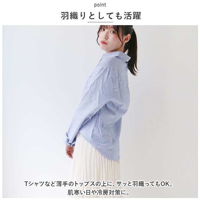 ・Tシャツなど薄手のトップスの上に、サッと羽織ってもOK。肌寒い日や冷房対策に。
