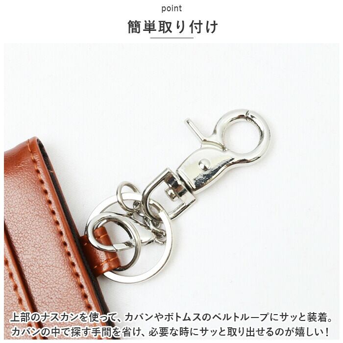 ・上部のナスカンを使って、カバンやボトムスのベルトループにサッと装着。カバンの中で探す手間を省け、必要な時にサッと取り出せるのが嬉しい!