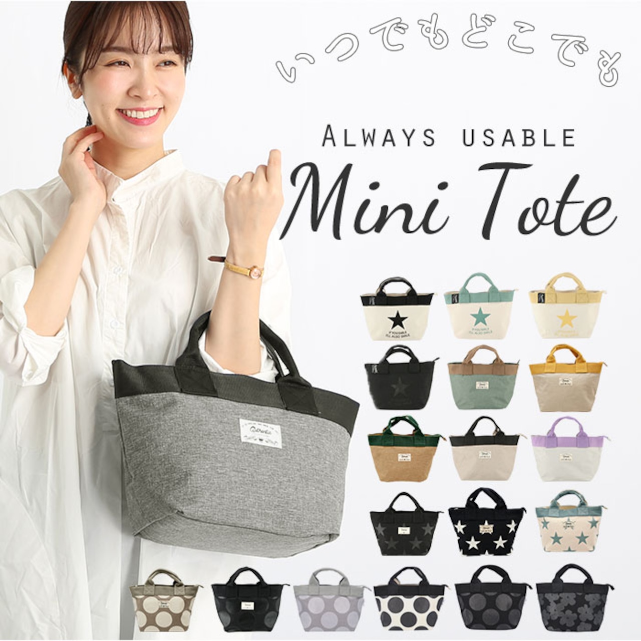 ・スターやドットなどポップな柄がひときわ目を惹く!JOUJOULIERのナチュラルなキャンバスミニトートが新登場。