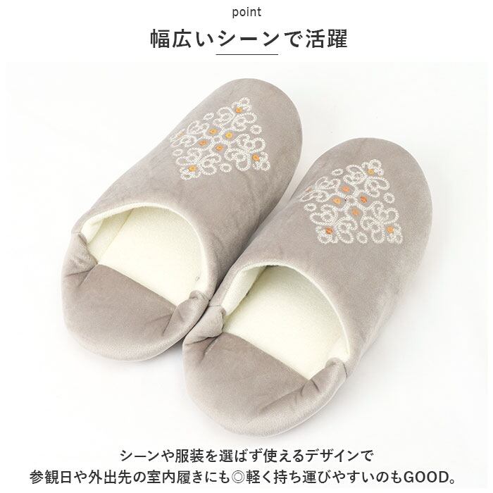FABORI グロッシー ルームシューズ 通販 スリッパ 室内履き スリッポン 軽量 刺繍 フェミニン 光沢 室内 シンプル レディース メンズ 機内 ギフト 贈り物