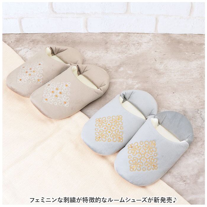 ・フェミニンな刺繍が特徴的なルームシューズが新発売♪