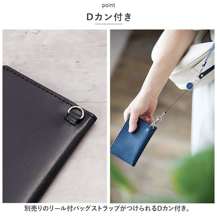 ・別売りのリール付バッグストラップがつけられるDカン付き。