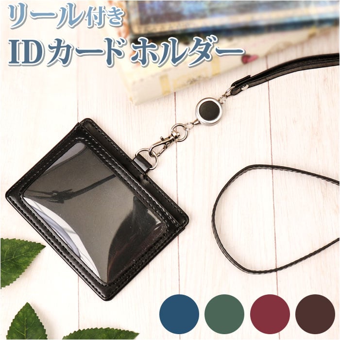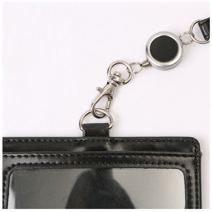 IDカードホルダー リール付き 通販 IDカードケース IDケース IDホルダー IDカード ネームホルダー 名札ケース ストラップ 名札ホルダー 定期入れ パスケース 横型 おしゃれ シンプル 合皮 フェイクレザー メンズ レ