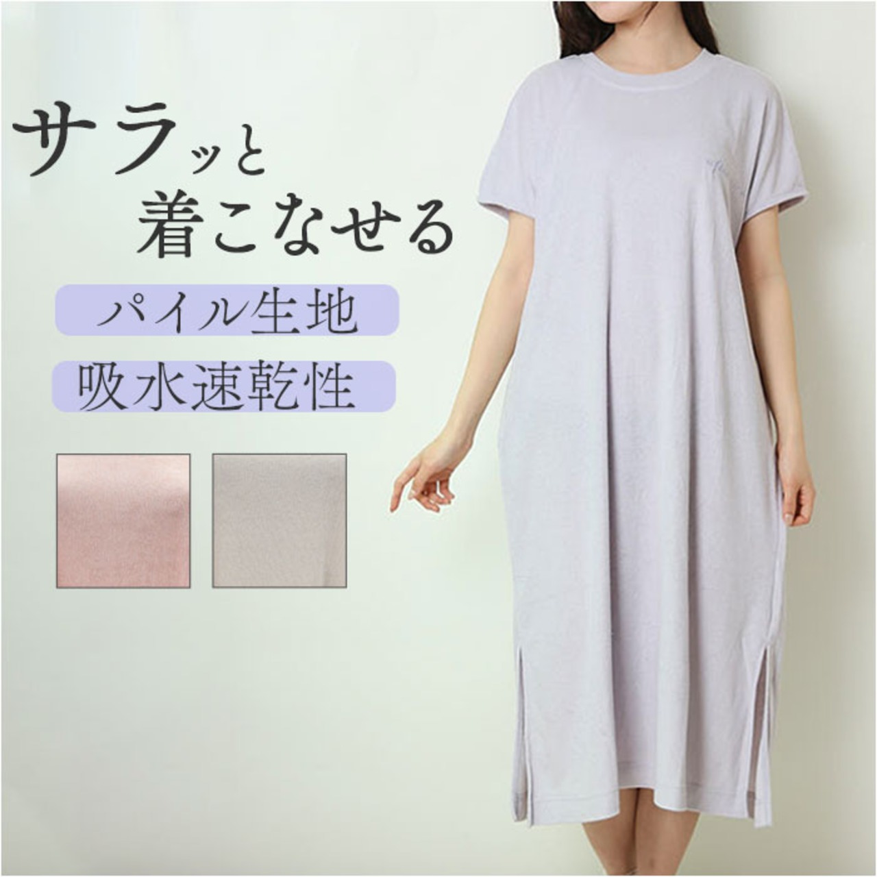 ・快適なお家時間をサポート!ラクに着られる「パイル半袖ワンピース」。