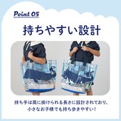 ・前後は中が見えにくいプリント柄。バッグの内側にネームタグ付きでお子さまも安心!