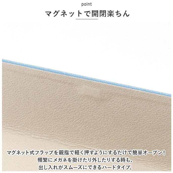 ・マグネット式フラップを親指で軽く押すようにするだけで簡単オープン!頻繁にメガネを掛けたり外したりする時も、出し入れがスムーズにできるハードタイプ。