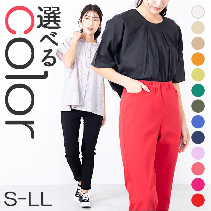 スリムパンツ レディース 通販 ストレッチパンツ ストレッチ パンツ スリム ゴム ウエスト ツイルストレッチスリムパンツ シンプル きれいめ 無地 おしゃれ カラフル 大人かわいい 可愛い ロングパンツ ボトムス レディースファッション