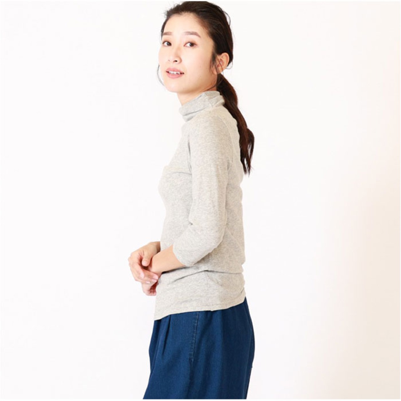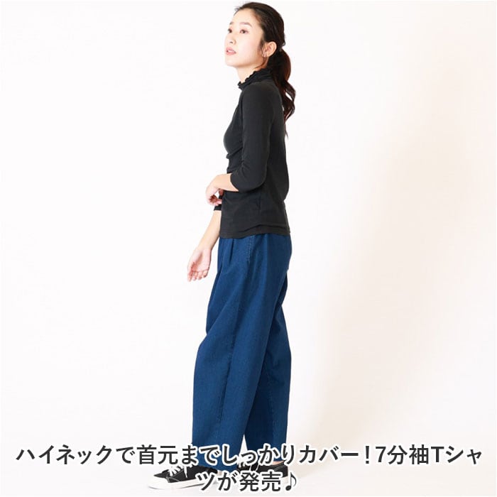 ・ハイネックで首元までしっかりカバー!7分袖Tシャツが発売♪