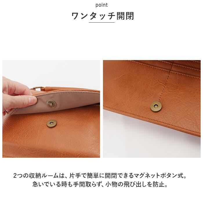 ・本革のような風合いのフェイクレザー素材を使用。きちんと感があり、どんなコーデにも素敵にマッチ♪