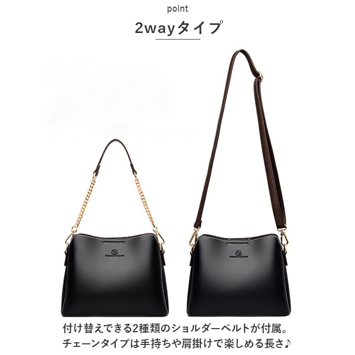 ・付け替えできる2種類のショルダーベルトが付属。チェーンタイプは手持ちや肩掛けで楽しめる長さ♪