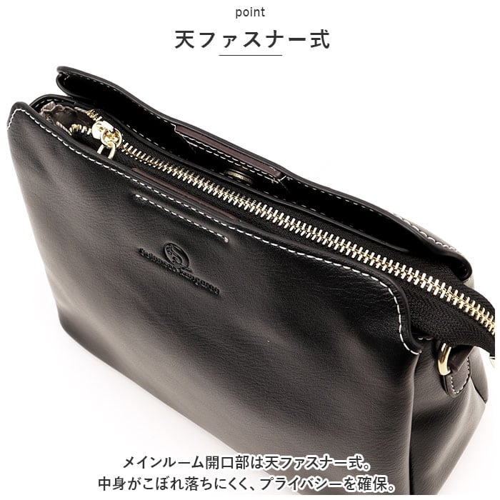 ・メインルーム開口部は天ファスナー式。中身がこぼれ落ちにくく、プライバシーを確保。