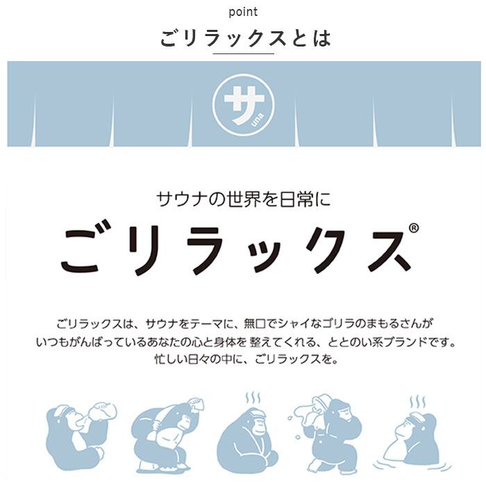 ・ごリラックスは、サウナをテーマに、無口でシャイなゴリラのまもるさんが、いつもがんばっているあなたの心と身体を整えてくれる、ととのい系ブランド。